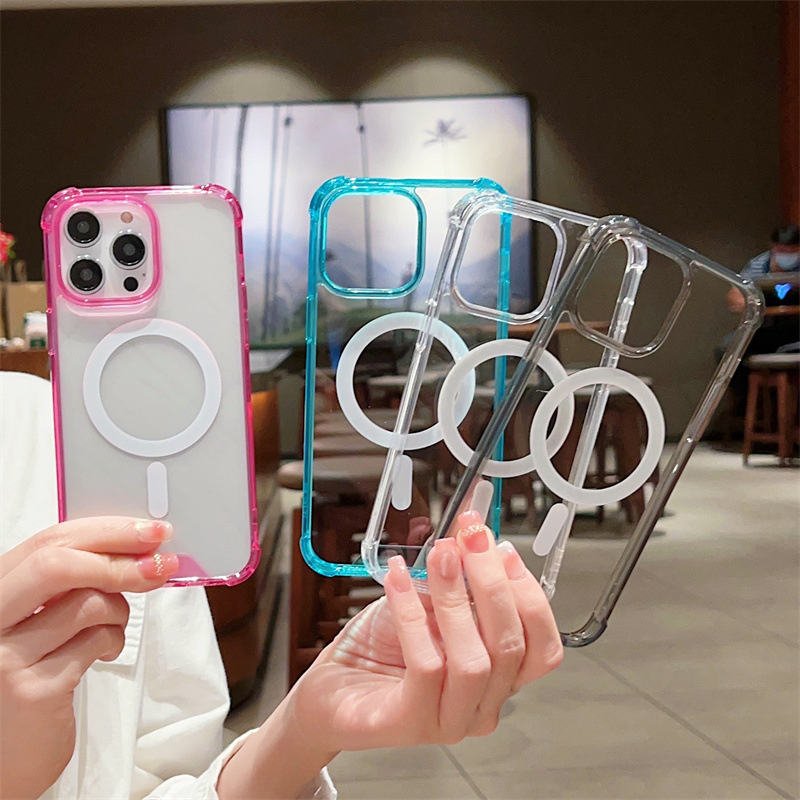Four Corners Anti Fall Shockproof Transparent Magnetic Phone Case for iPhone 17 Pro Max Wireless Charging Clear Cover.